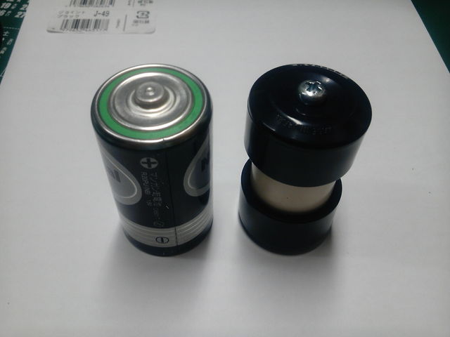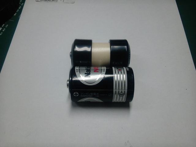 9:これにプラスの端子側を被せて、単1電池と比べたところ